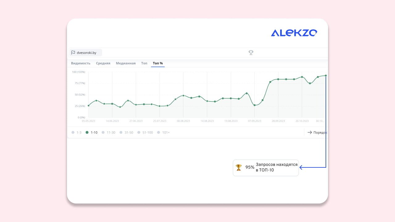 И сразу достигать вот такого роста позиций в ТОП-10 поисковой выдачи