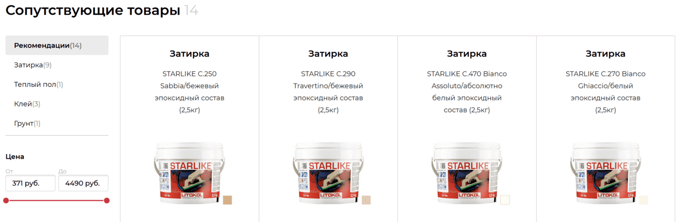 Особенностью проекта является то, что основная продвигаемая сущность в каталоге сайта – это коллекции, а не товары. Например: https://mosplitka.ru/catalog/plitka/collection-marmori/. В рамках одной карточки коллекции пользователю предлагается подборка тематических, связанных между собой товаров.