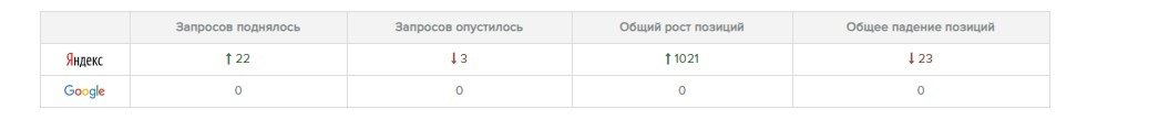По позициям - многие ключевые слова с 200-ых позиций поднялись до ТОП-20-30 в Яндексе, также начали постепенно расти и в Гугле.