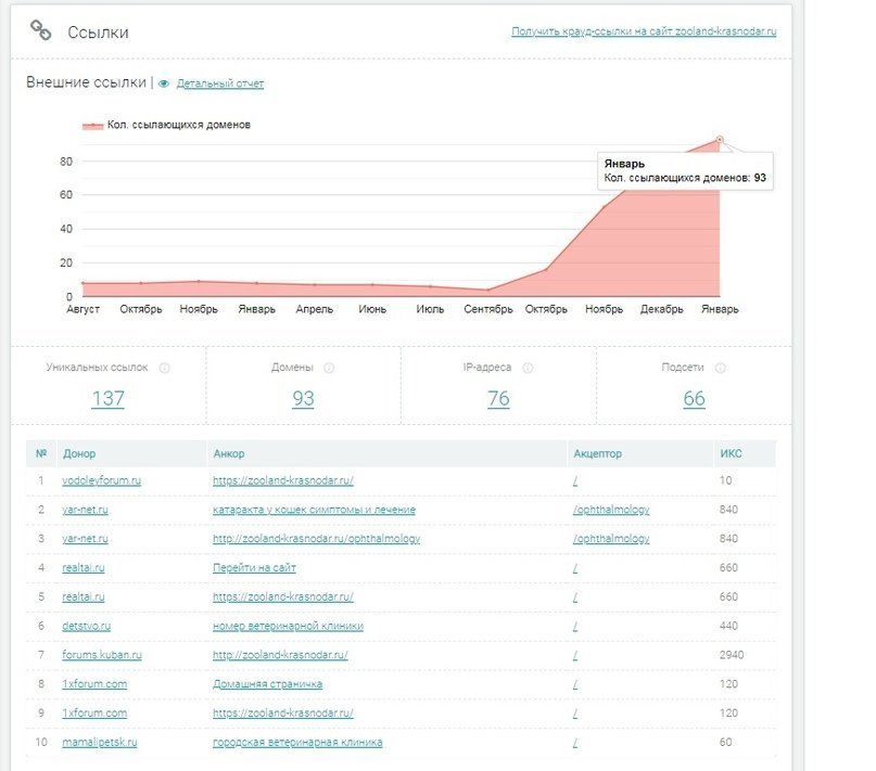Количество качественных ссылок на сайт, успешно проиндексированных поисковиками увеличилось до 137 штук с 93 уникальных доменов.