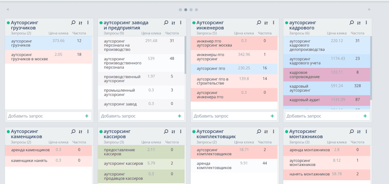 Интересный момент: среди созданных страниц попадались и те, что имели довольно низкий потенциал трафика. Например, «Аутсорсинг сварщиков» — казалось бы, зачем? Но стратегия предполагала максимальный охват семантики для наращивания авторитета домена.