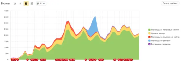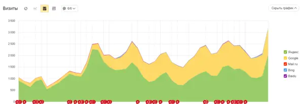 рост трафика из поисковых систем, удалось значительно поднять трафик из Google