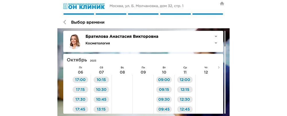 Произвели интеграцию сайта с сервисом онлайн-записи на прием к врачам Gbooking. Пациенты могут выбрать удобное время для приема у врача, а также заполнить свои контактные данные. Вся информация отправляется в CRM-систему Gbooking, приходят уведомления кол-центру и всем задействованным в процессе сотрудникам