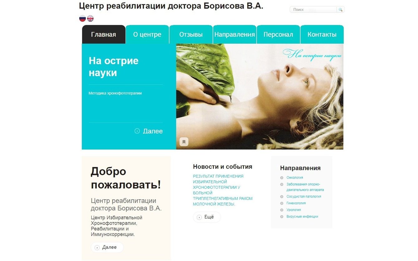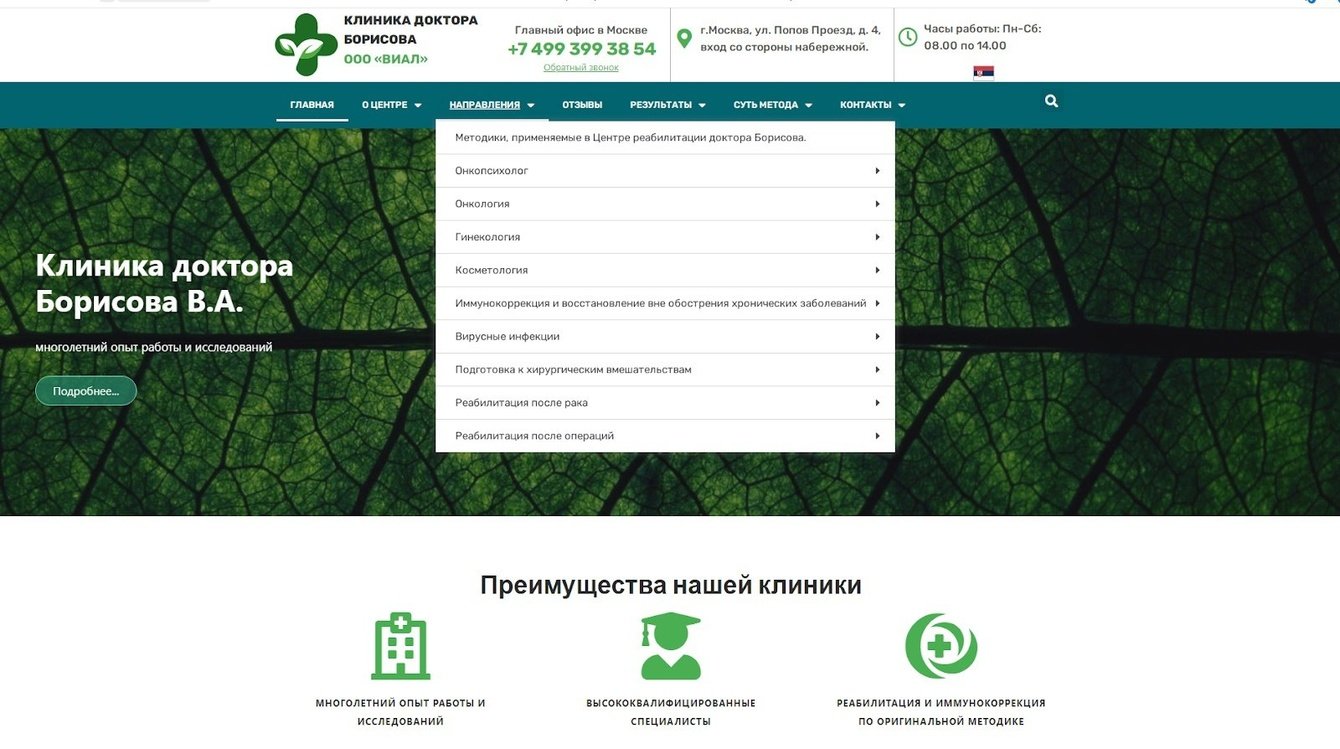- В шапке название клиники раньше было картинкой, сделали текстом (чтобы его лучше считывали поисковики)