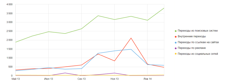 Увеличение поискового трафика до 3 800 посещений в месяц в период с мая 2013 по февраль 2014 года.