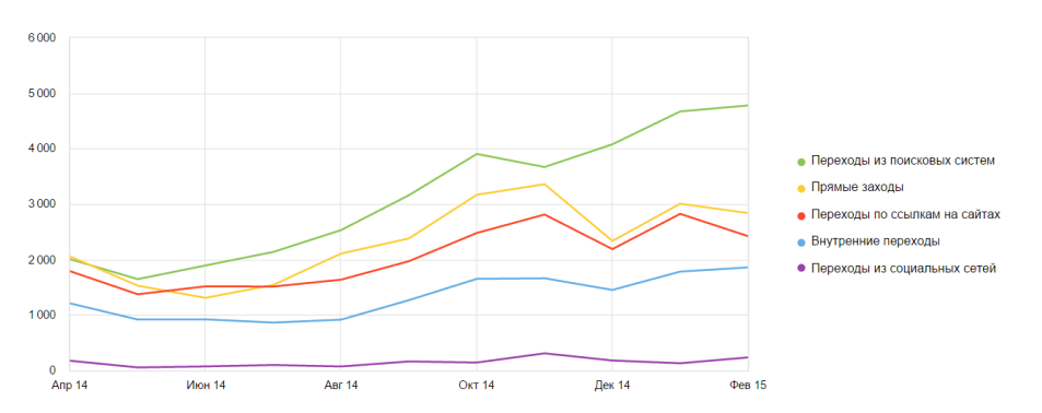 Увеличение поискового трафика до 4 800 посещений в месяц в период с апреля 2014 по февраль 2015 года.