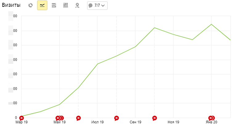 К 4 месяцу продвижения сайт выстрелил и попал в первые позиции выдачи по ключевым словам.