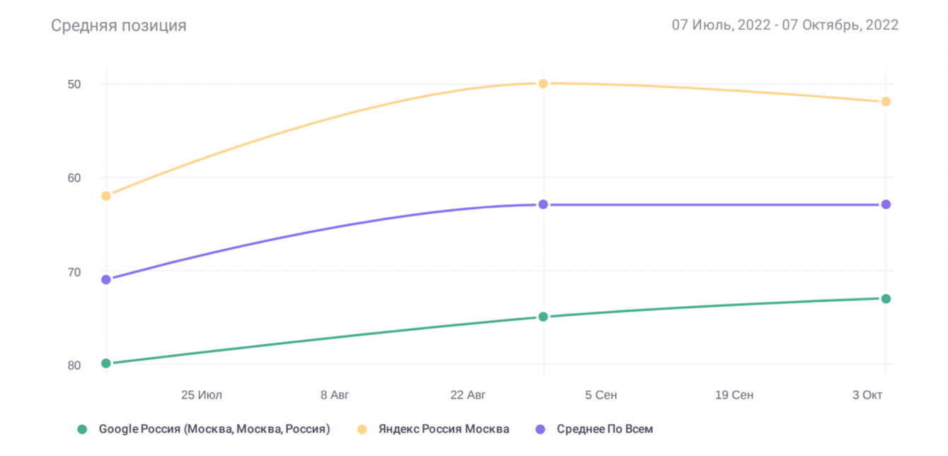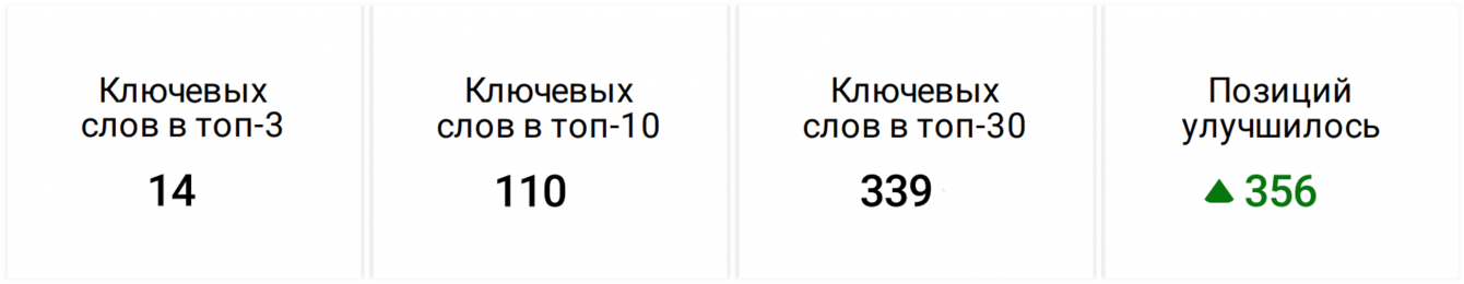 После анализа мы предложили заказчику план работ по продвижению проекта на год. Работы по оптимизации стартовали в апреле, а уже к январю мы получили среднюю позицию лучше, чем у конкурентов, и заняли первые места в выдаче.