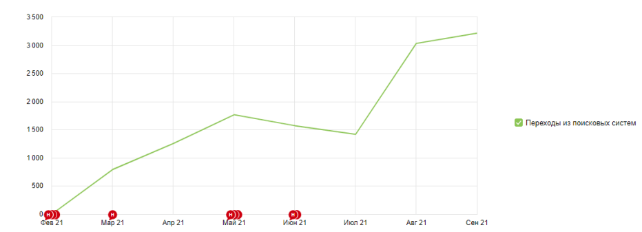 Продвижение с нуля до 3 200 посещений в месяц в период с февраля по сентябрь 2021 года.