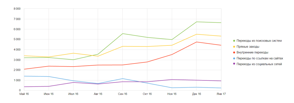 Увеличение поискового трафика до 6 600 посещений в месяц в период с мая 2016 по январь 2017 года.