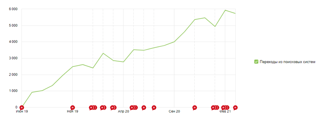 Увеличили количество посещений с 0 до 6 000 в месяц.