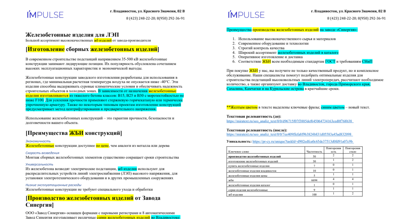 Завод «Синергия» специализируется на изготовлении железобетонных опор для ЛЭП. Нам предстояло запускать молодой сайт – с минимальной историей в Поиске, в сравнении с конкурентами.