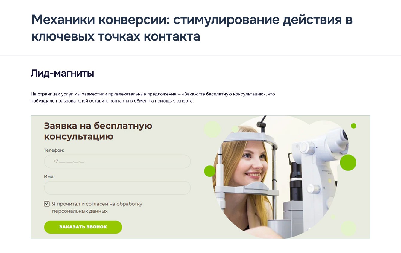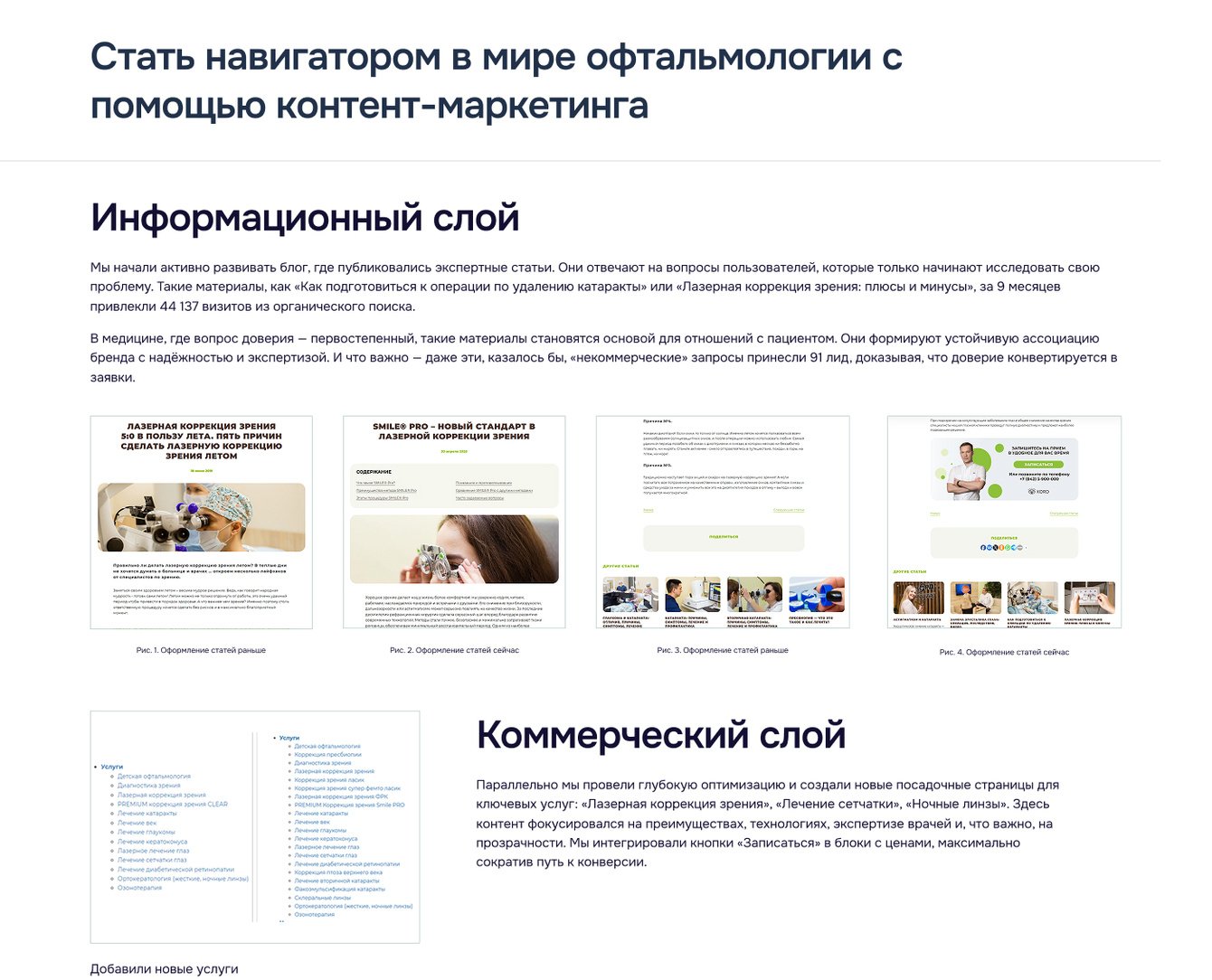 — Информационный слой: блог с экспертными статьями («Как подготовиться к операции» и др.) привлек более 44 000 визитов, формируя лояльность.