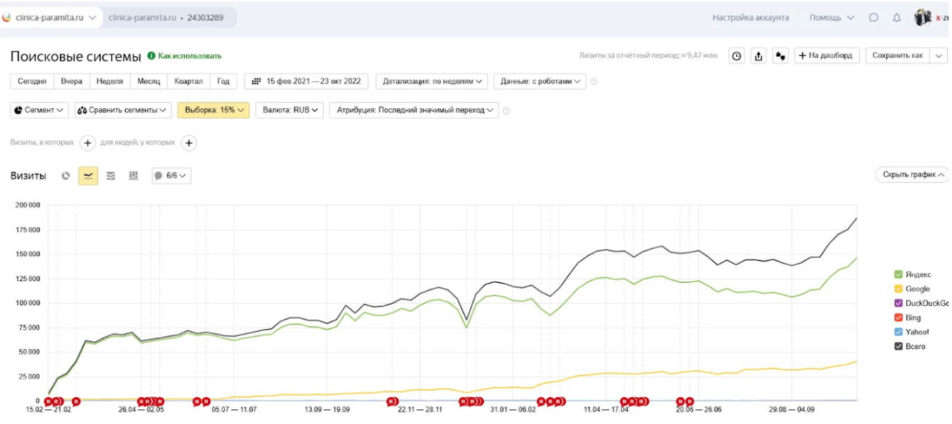 В итоге, мы лидируем по метрикам среди похожих клиник: больше бесплатных приемов, рост заявок. Мы отслеживаем все по каналам, делимся отчетами с клиентом – полная прозрачность.