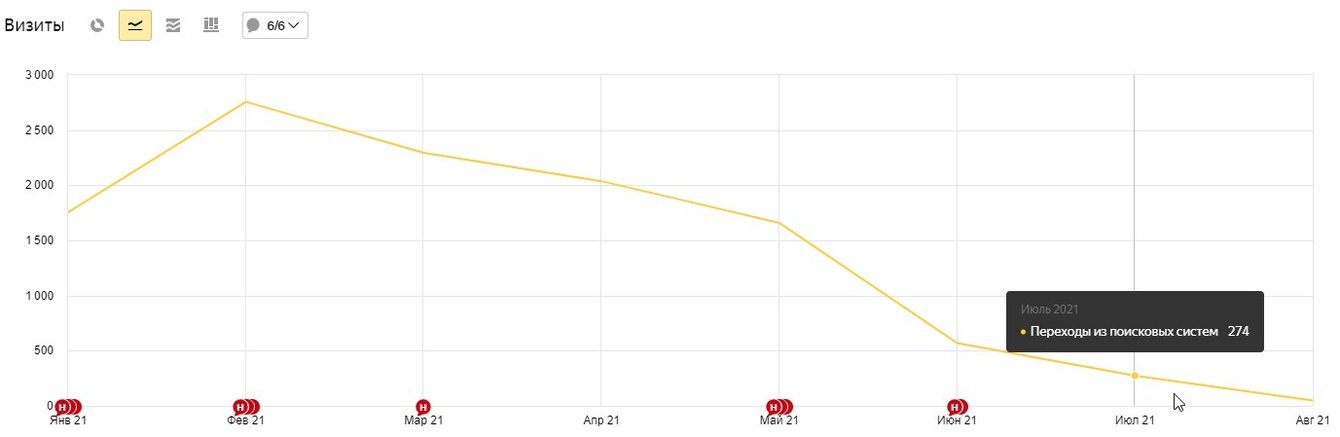 График посещаемости демонстрировал устойчивое снижение, без изменений сайт рисковал окончательно уйти из поисковой выдачи.