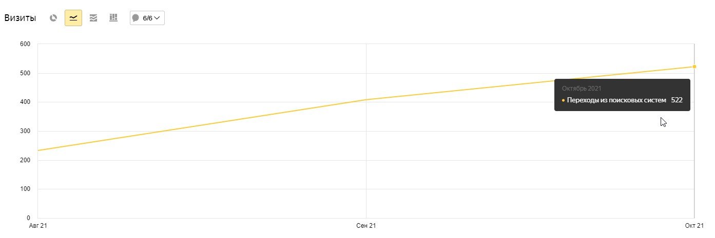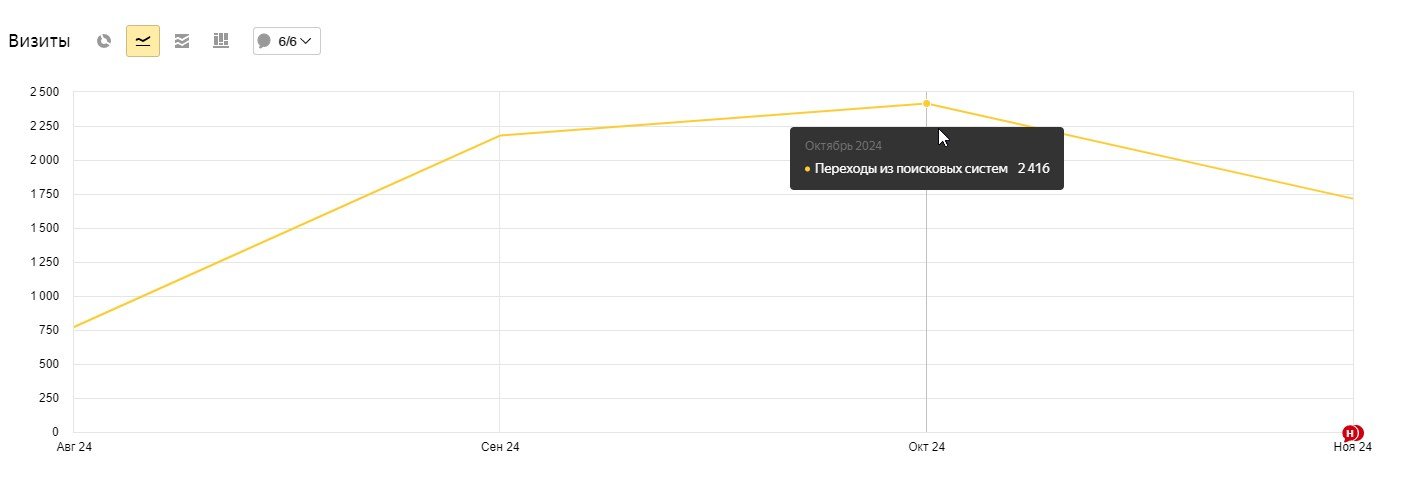 Трафик вырос до 2400+ переходов из поисковых систем — это примерно в 10 раз больше начальных показателей. Такие цифры стали возможны благодаря системному подходу: от технического аудита до продуманной перелинковки и удобных инструментов для пользователей.