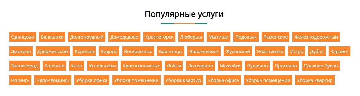 Для городов создали специальный перелинковочный блок. Если пользователь искал клининг в Мытищах, ему показывали информацию о работе в соседних Королеве или Пушкино. Получилась географическая сеть, которая помогла поисковым системам понять территориальную структуру сайта.