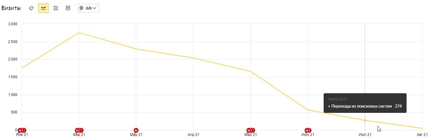 График посещаемости демонстрировал устойчивое снижение, без изменений сайт рисковал окончательно уйти из поисковой выдачи.