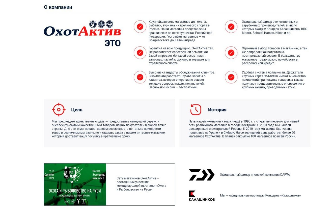 Специфика отрасли также добавляет свои сложности. «ОхотАктив» работает в нише, где конкуренция очень высока, поэтому важен каждый посетитель. Необходимо предоставлять актуальную информацию о товарах, быстро обновлять каталог, что особенно сложно из-за высокого влияния сезонности. Учет всех этих факторов делает работу с подобными проектами очень трудозатратной.