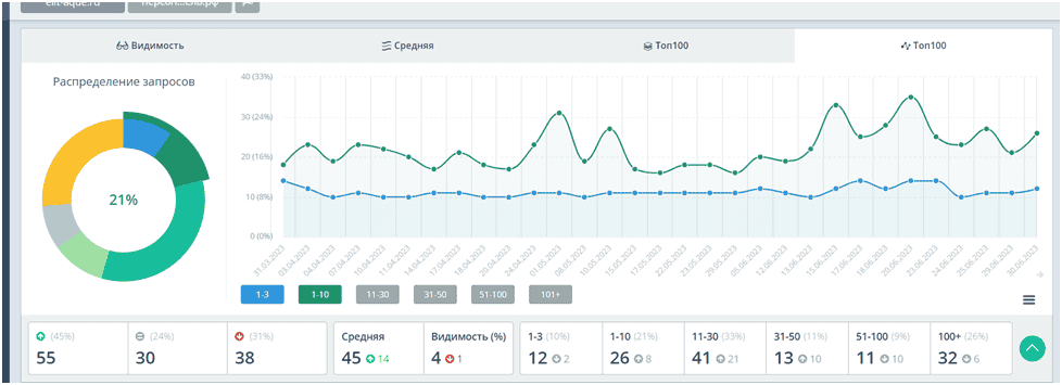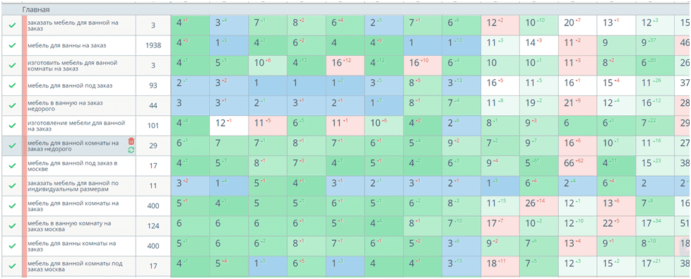 Команда продолжала совершенствовать ресурс, надеясь на улучшение ситуации. К июлю-августу около 40% запросов попали в топ-10 Яндекса, наблюдался некоторый рост показателей трафика. Однако ключевые запросы главной страницы группы «мебель для ванной на заказ» так и не закрепились в ТОПе. Прироста качественных лидов по-прежнему не было.