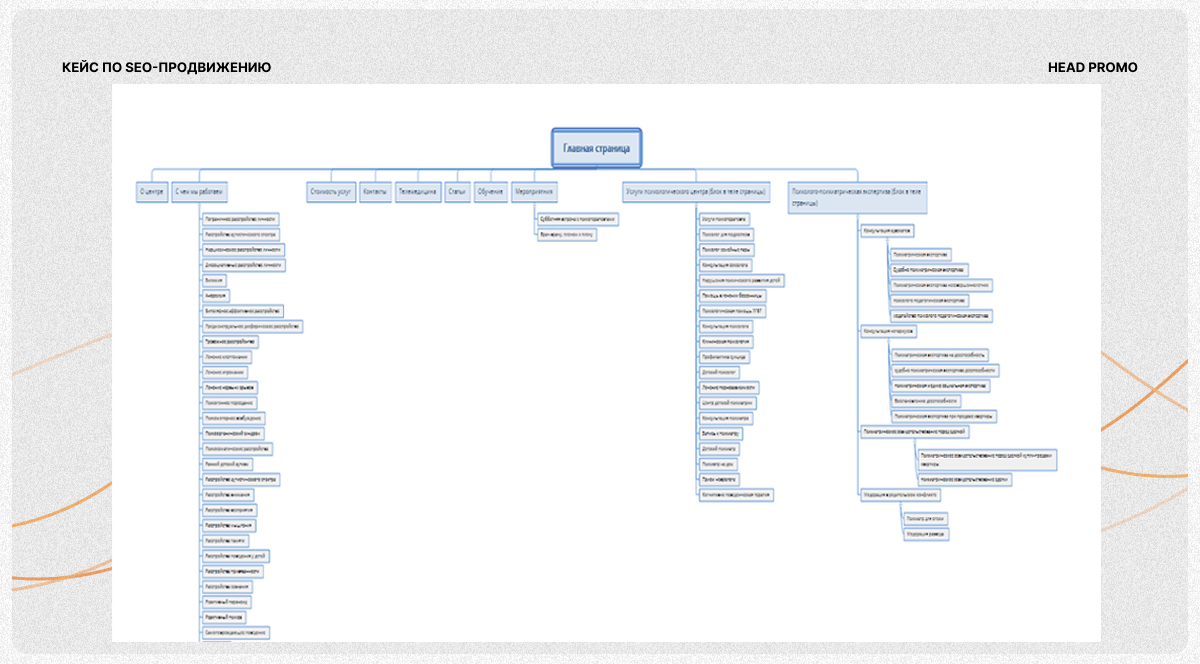 На основе собранной семантики и анализа конкурентов мы готовим проект структуры сайта клиники услуг психолога: