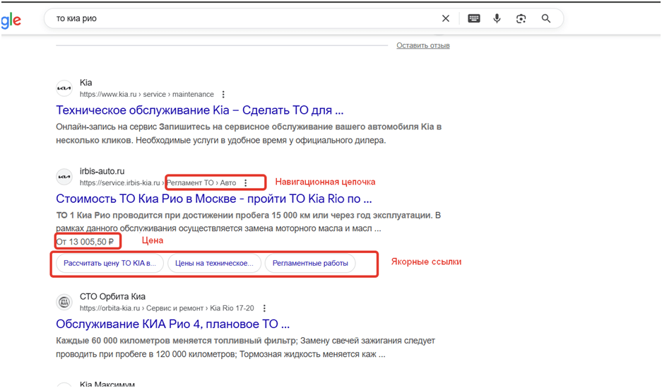 Первая сложность возникла при анализе семантики. Пользователи искали информацию двумя способами: одни хотели «записаться на ТО киа рио», другие интересовались «регламентом то киа». Классический подход предполагает создание одной страницы, но команда пошла против стандартов.