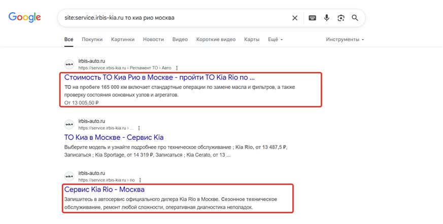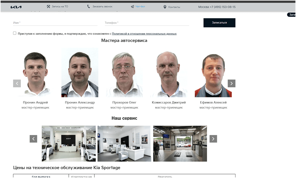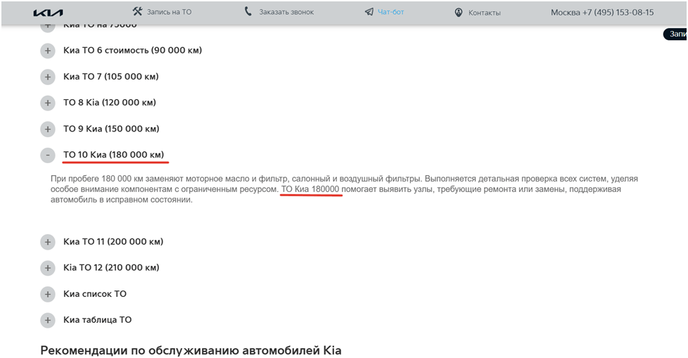 Аналогично поступили с постгарантийным обслуживанием. Маркетологи клиента сообщили о тенденции: владельцы KIA стали дольше пользоваться автомобилями вместо замены на новые. Страница была создана с упреждением — когда спрос вырастет, позиции уже будут захвачены.