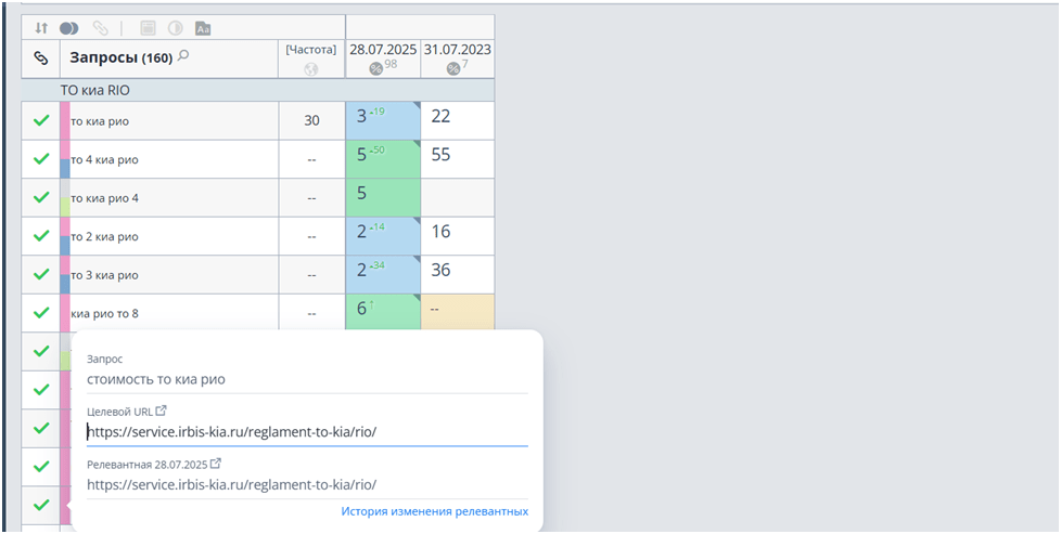 ⦁ Войти в ТОП-5 Яндекса и Google по запросам технического обслуживания KIA