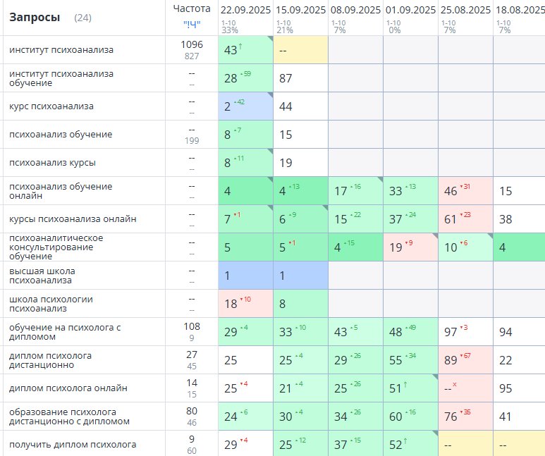 Онлайн-школа «Вышка Пси» предлагала качественные программы по психоанализу для психологов, но её сайт vishka-psy.ru практически не находили в поиске. Несмотря на сильный преподавательский состав и легитимные дипломы, органический трафик был близок к нулю.