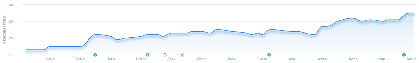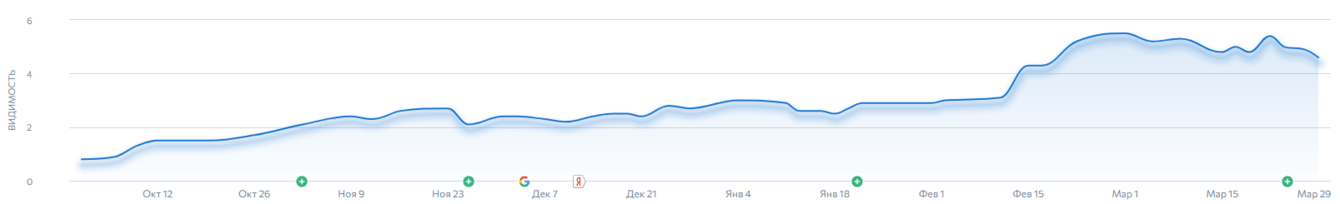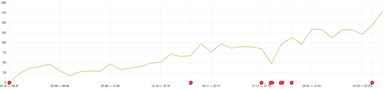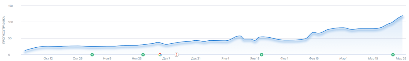 В начале работ трафик составлял 0 посетителей в неделю, а за 7 месяцев работы вырос до 170 визитов в неделю.