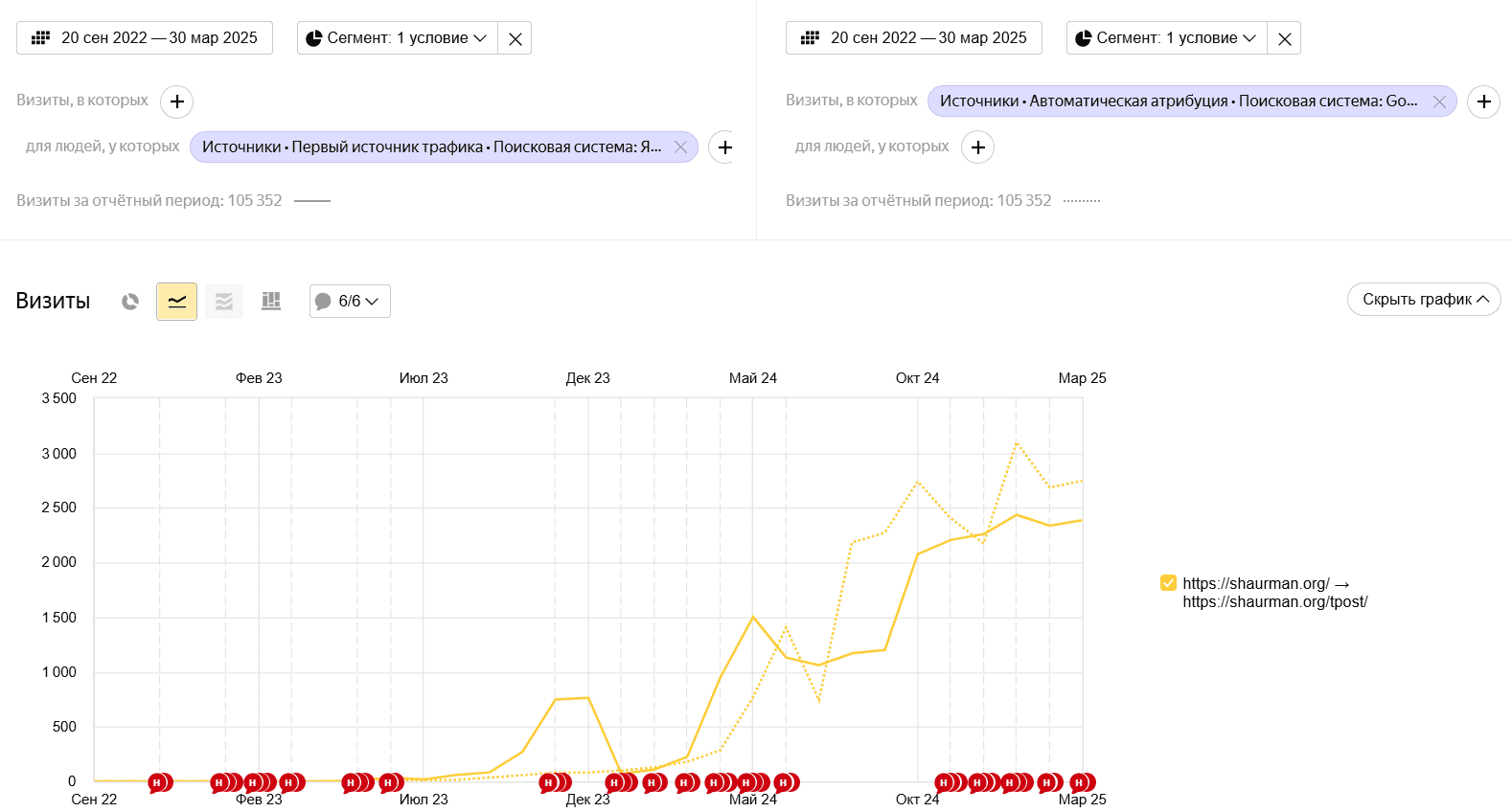 Комплексная SEO-стратегия для shaurman.org включала техническую настройку платформы Tilda, детальную проработку семантического ядра под специфику B2B-сегмента, выстраивание логичной структуры каталога, запуск информационного раздела с регулярными публикациями, интеграцию с Яндекс.Бизнес, работу над факторами доверия. Этот подход развеял миф о невозможности эффективного продвижения сайтов на конструкторах: за два года 50% коммерческих запросов закрепились в ТОП-10 Яндекс, 65% — в ТОП-10 Google, органический трафик достиг 7 000 посетителей ежемесячно при старте практически с нуля.
