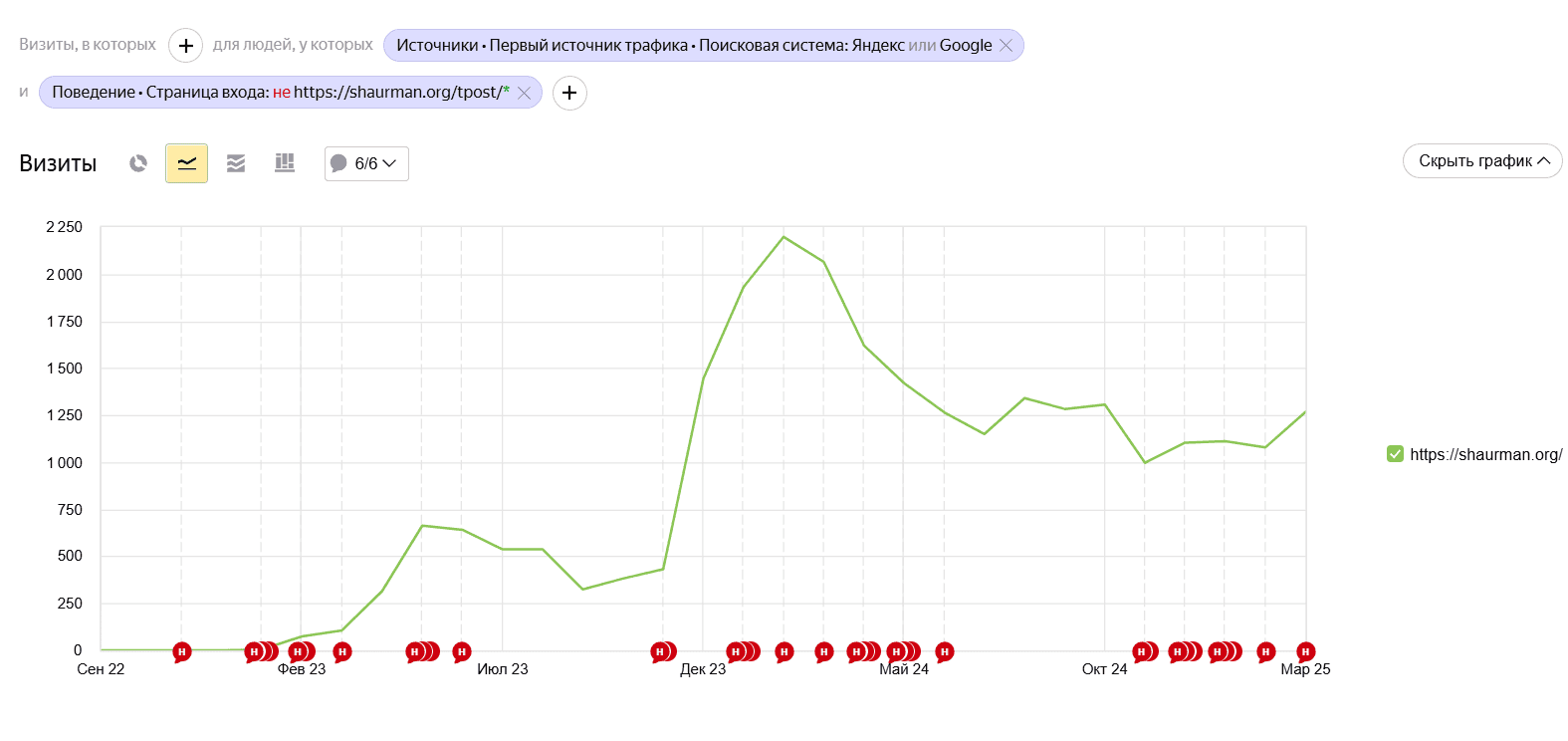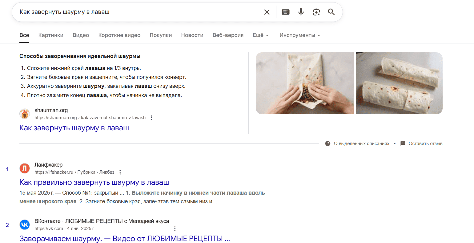 За год только блог вырос до 5 000 посетителей ежемесячно. Темы брали простые, бытовые — например, «Как завернуть шаурму в лаваш» стала одной из самых популярных публикаций. В статьях обязательно проставляли анкорные ссылки на коммерческие разделы.