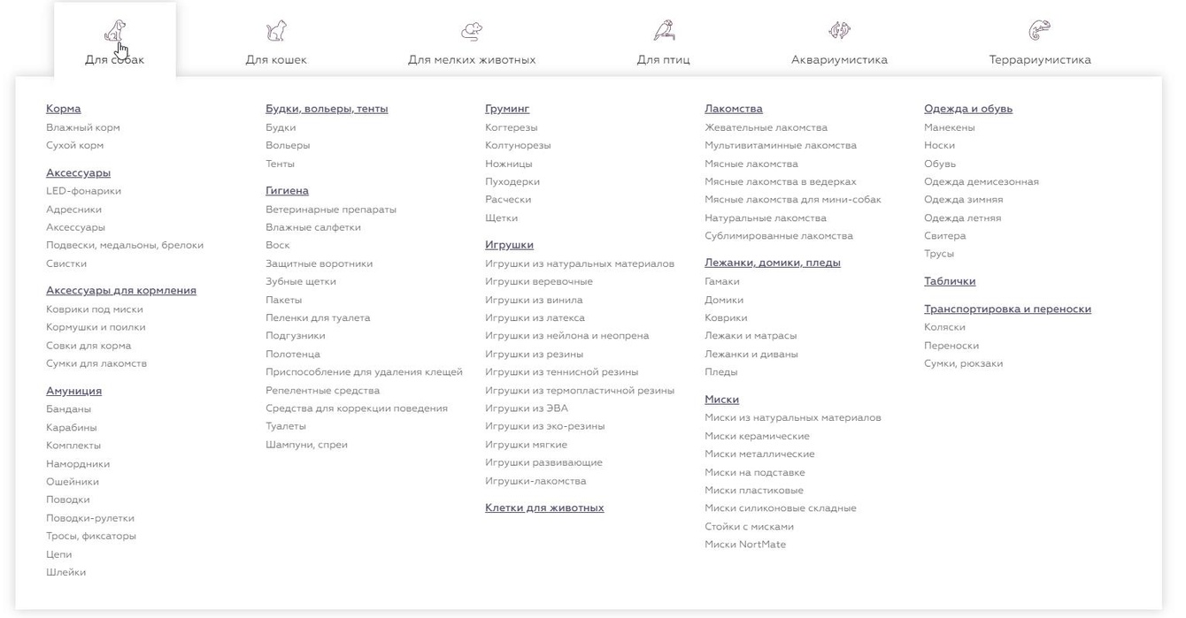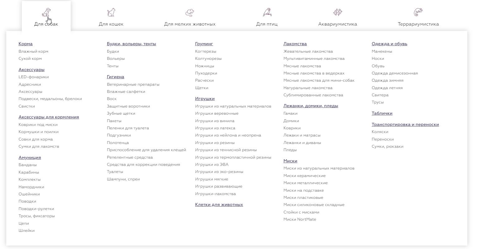 Архитектура сайта базировалась на единой товарной базе, используемой на нескольких проектах заказчика. Менять структуру разделов было невозможно. Мы адаптировались к ограничениям, сосредоточившись на качестве наполнения существующих страниц.