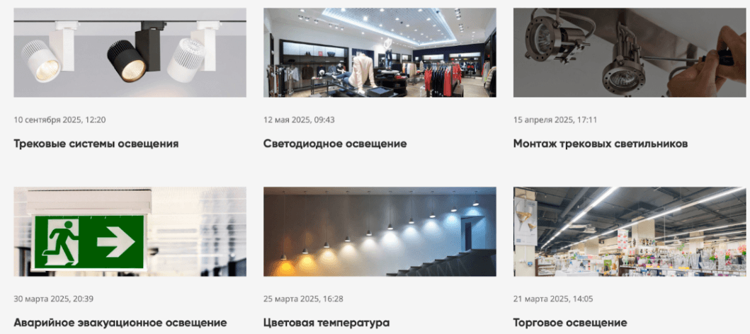 информационные — «что такое трековое освещение», «нормы освещенности».