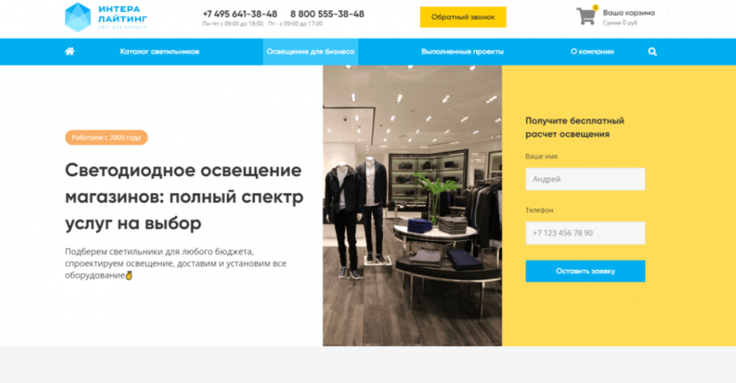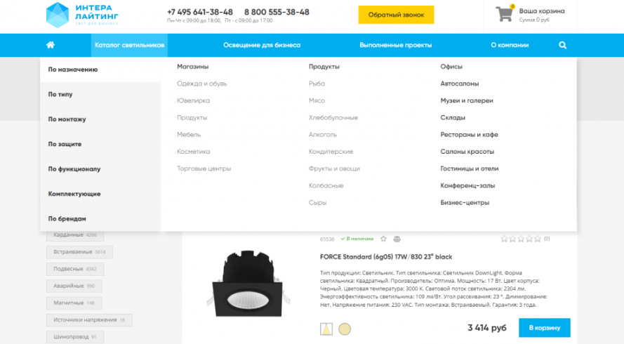 Таким образом, клиент, попадая на сайт, сразу понимает, какое освещение ему подходит, какие светильники нужны и в каком количестве, что существенно упрощает выбор и ускоряет принятие решения.
