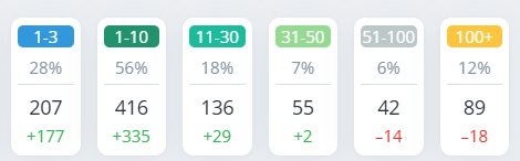 – количество запросов в топ-3 Google выросло с 30 до 207, а топ-10 — с 81 до 416