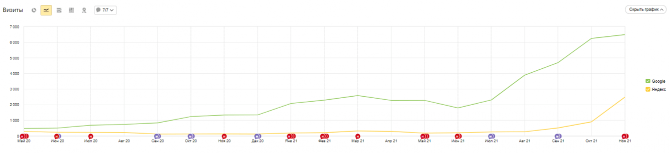 - Увеличение видимости сайта по максимальному количеству запросов.