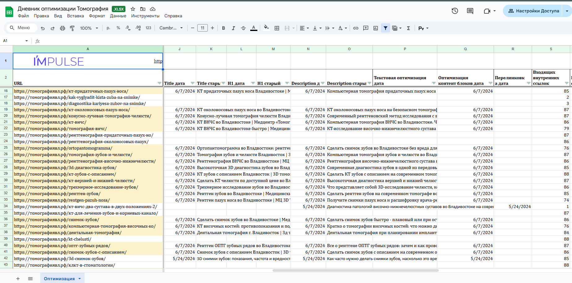 Первым этапом необходимо было сосредоточиться на разработке структуры сайта. Было собрано семантическое ядро, исходя из оказываемых услуг. Так как компания имела узкую специализацию было принято решение искусственно расширить перечень услуг по запросам-синонимам («снимок зубов», «рентген зубов», «рентгенография зубов» и т.п.). Таким образом сайт, в отличие от конкурентов, предоставлял более релевантную информацию на конкретный запрос. При этом так как эти запросы были низкочастотными, то ресурс с первых месяцев получал именно высокоцелевой трафик.