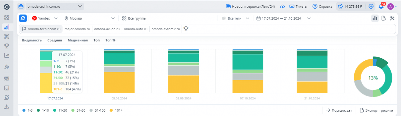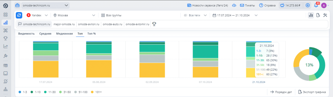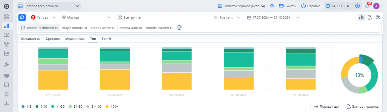 SEO-продвижение сайта на импортерской платформе. Повышение видимости по ключевым фразам в поисковой выдаче, увеличение органического трафика на сайт.