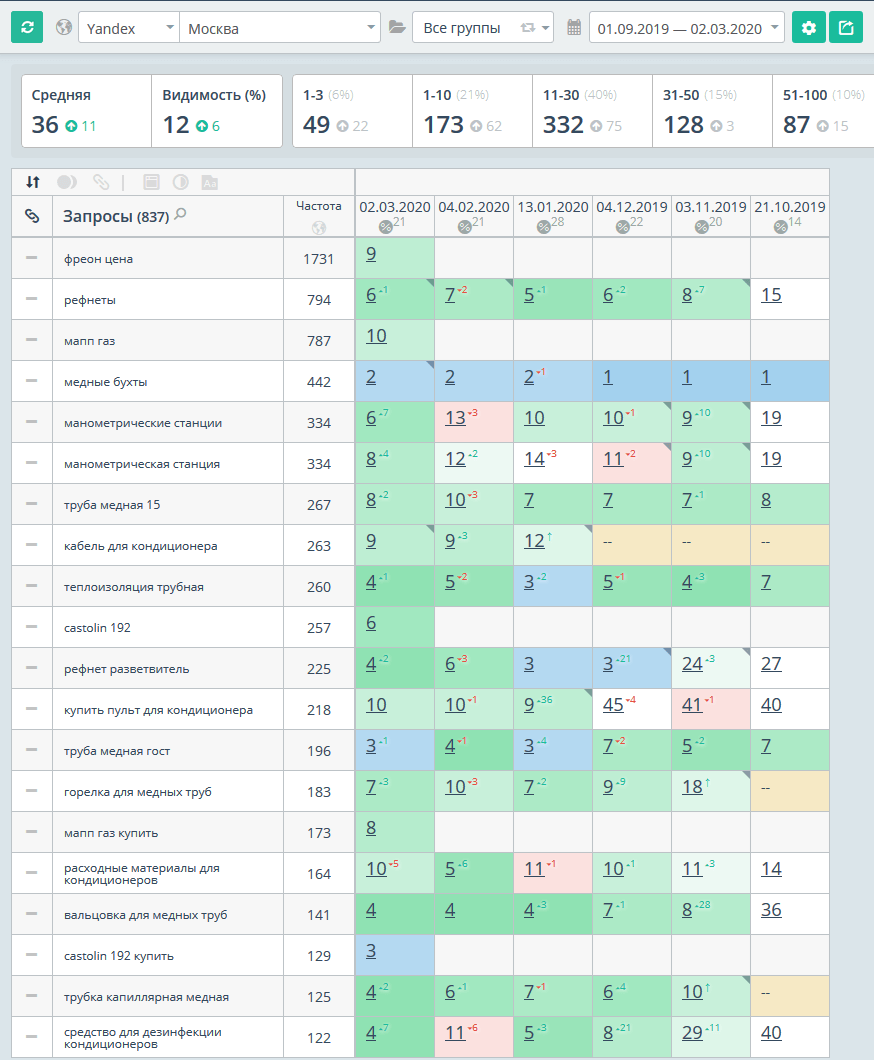 Сбор позиций проводился в программе Topvisor на 02 марта 2020 года: