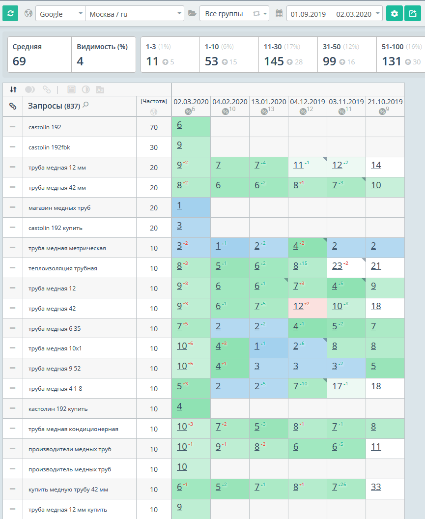 Сбор позиций проводился в программе Topvisor на 02 марта 2020 года: