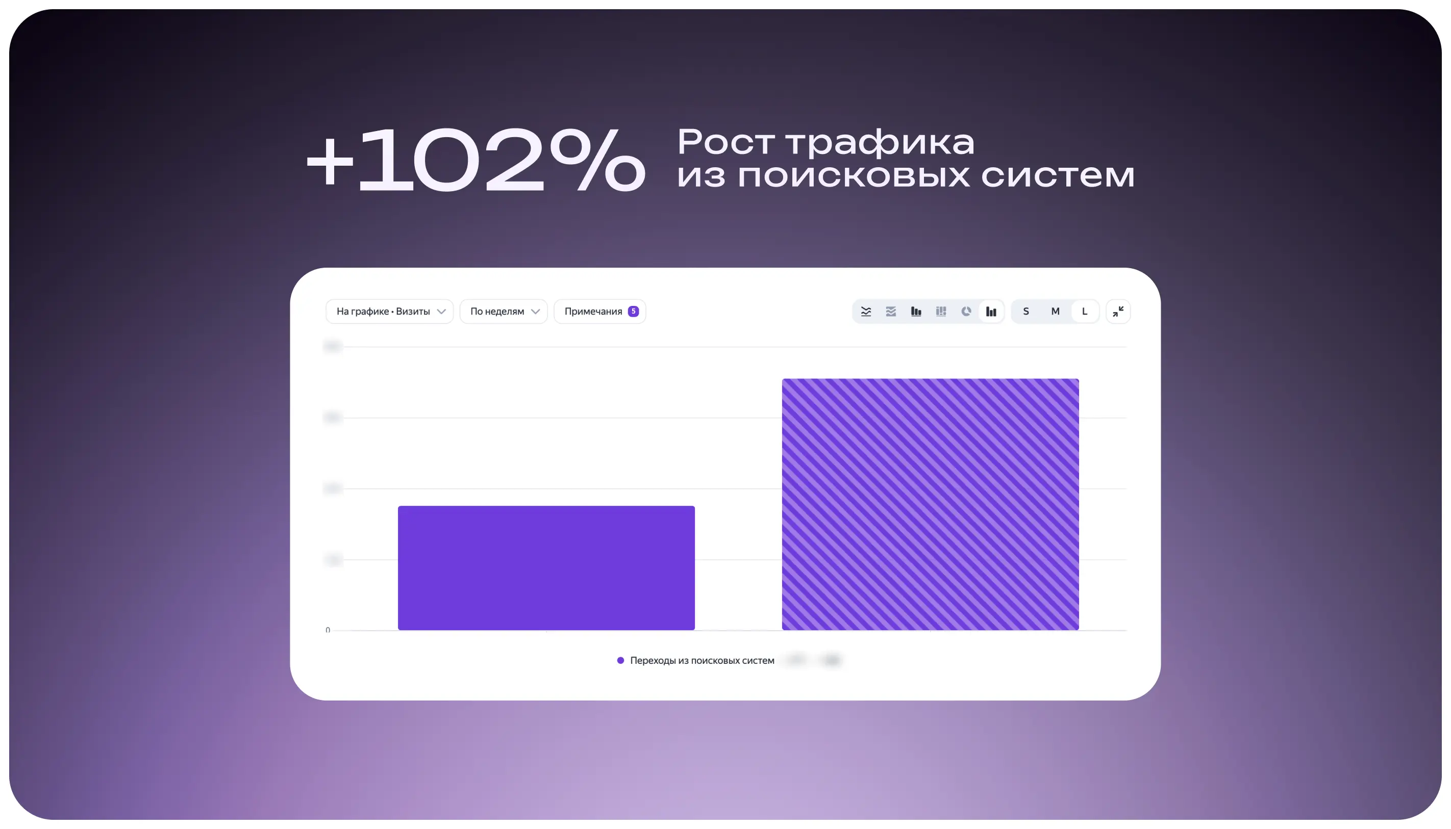 По итогам квартала мы зафиксировали рост трафика на сайт — +102%! Дополнительно проверили качество посещений: следов ботов с высоким уровнем отказов не обнаружили — показатели в норме.