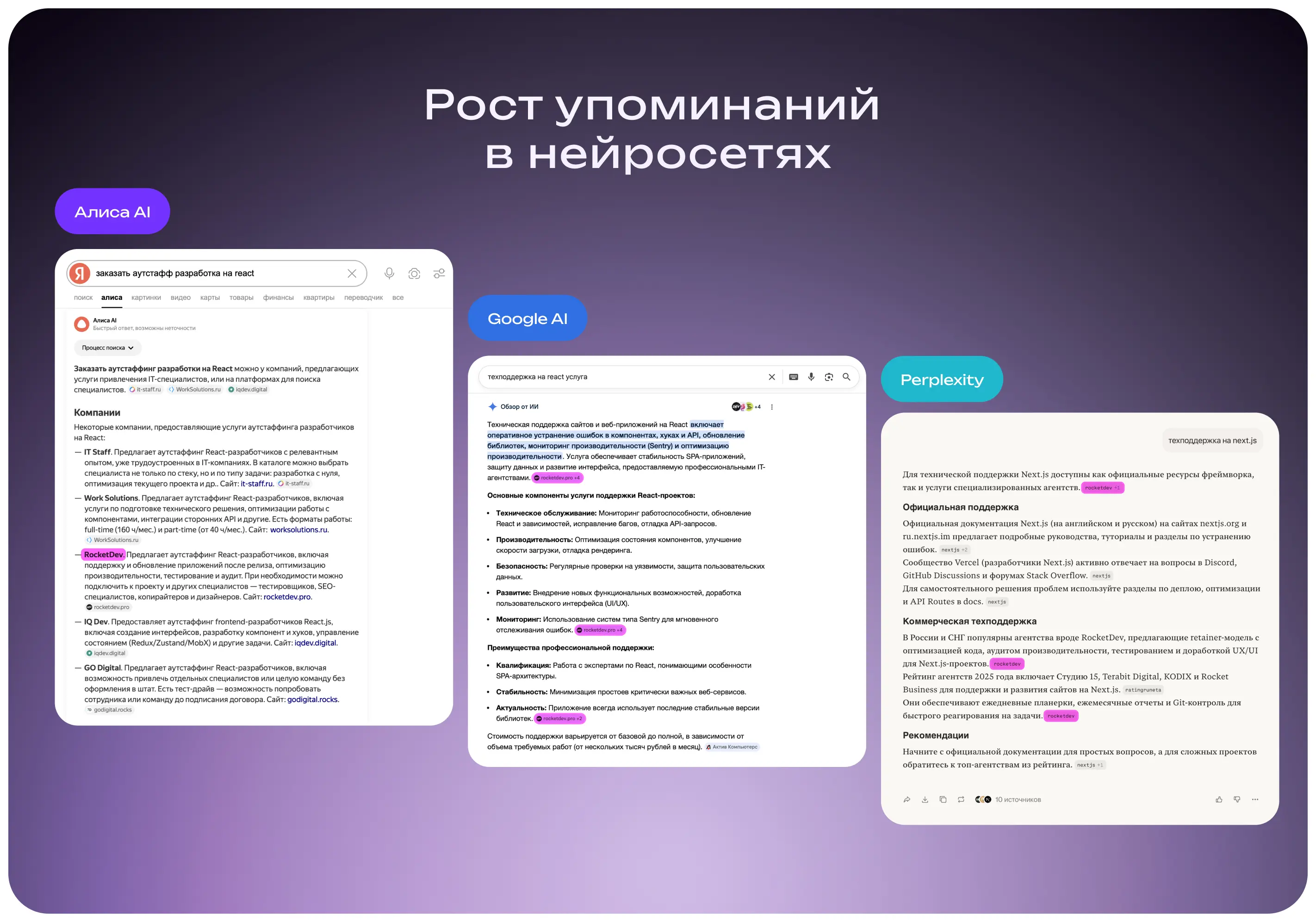Мы сразу заложили эти работы в стратегию и постепенно наращивали лояльность AI-ассистентов к RocketDev.