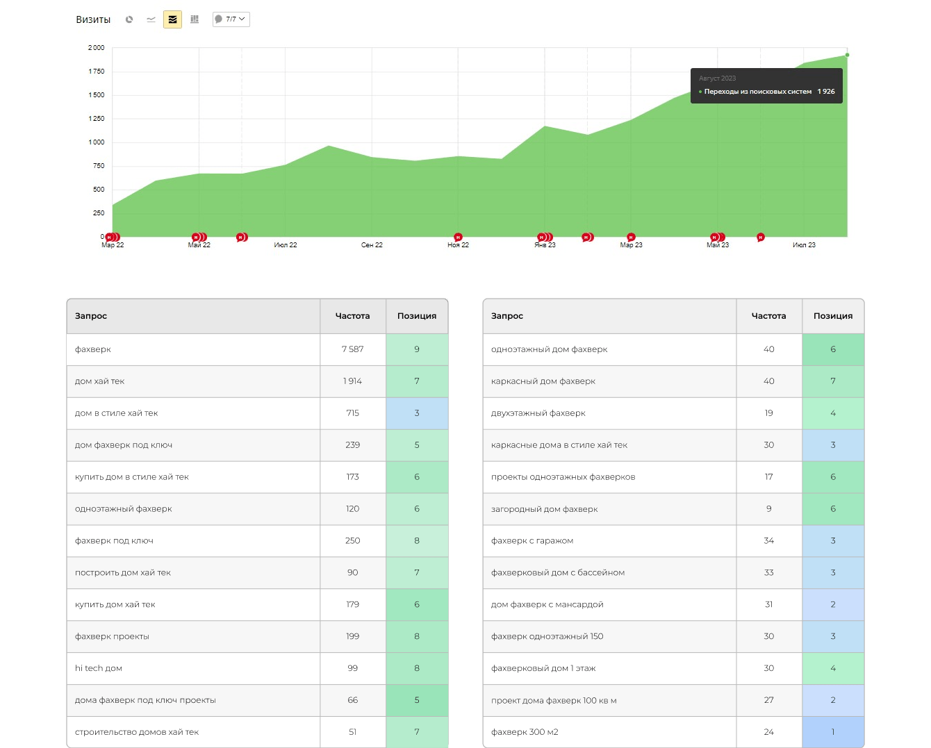 1. сбор подробной семантики и разработка структуры каталога домов для максимального охвата запросов;