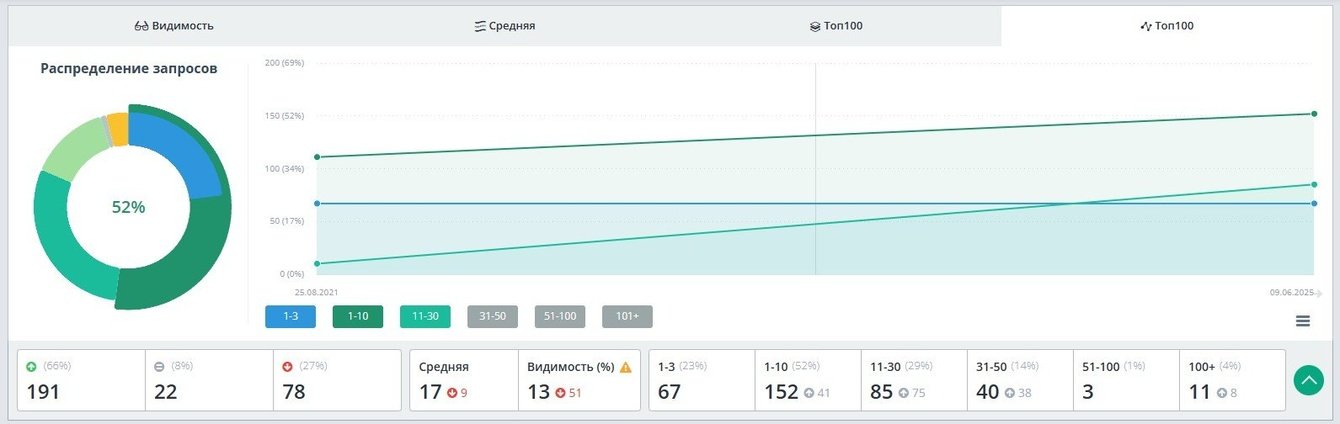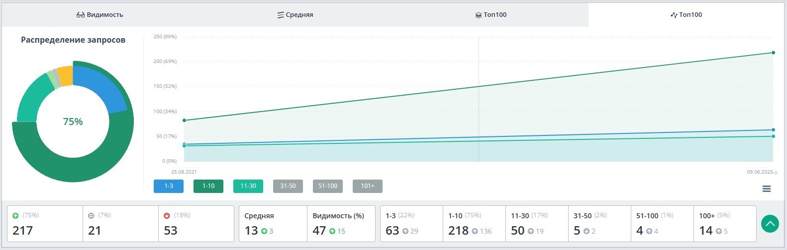 75% ключевых запросов в топ-10 Google — позиции стабильно держатся более 2 лет