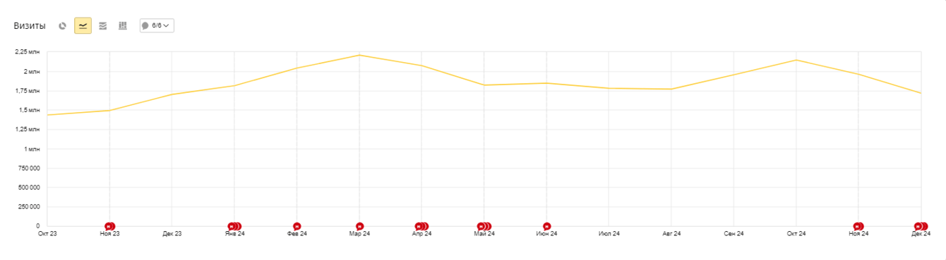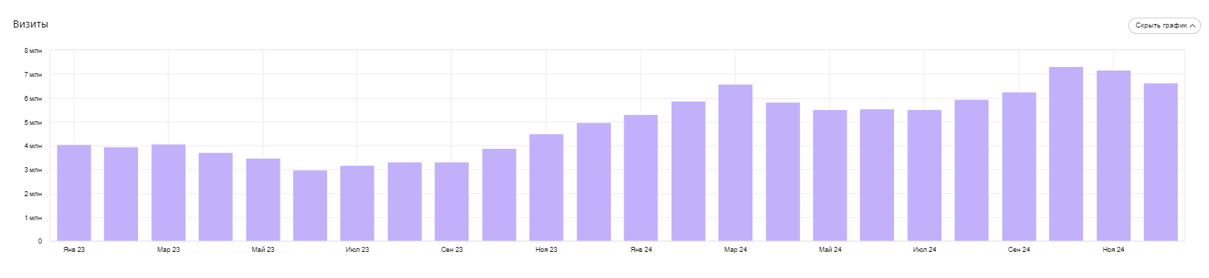 Слаженная работа по всем направлениям позволила проекту не только сохранять высокие позиции, но и стабильно увеличивать трафик. Комплексная стратегия SEO, ориентированная на техническую поддержку, расширение структуры сайта, проработку коммерческих факторов и создание востребованного контента, доказала свою эффективность: