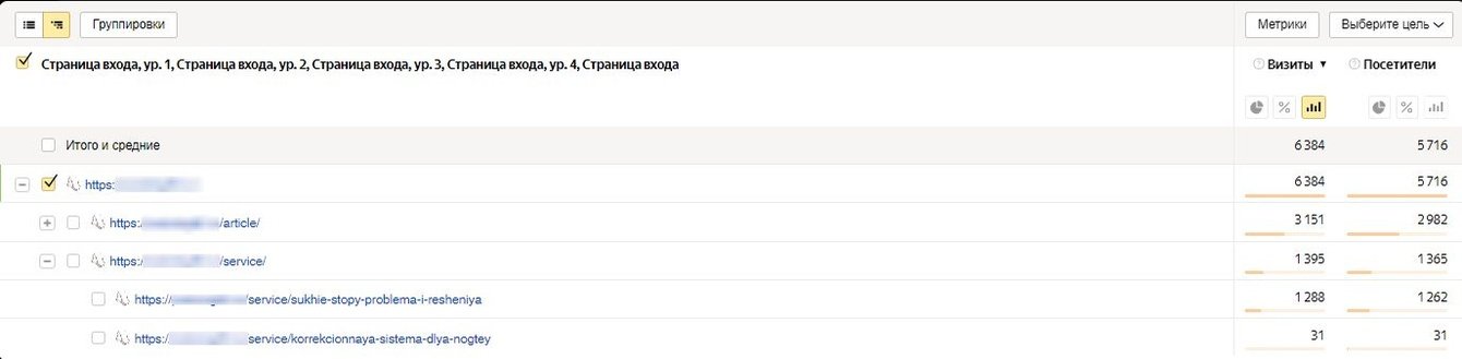Следующим шагом стал сбор семантического ядра. Мы проанализировали более 2000 ключевых запросов и выделили коммерческие направления и информационные темы. На основе ядра разработали стратегию: сформировать структуру сайта, создав под каждое направление услуги отдельные страницы, а в блог — регулярно писать статьи, объясняющие, что делает подолог, какие методы ухода применяются, когда обращаться за помощью.