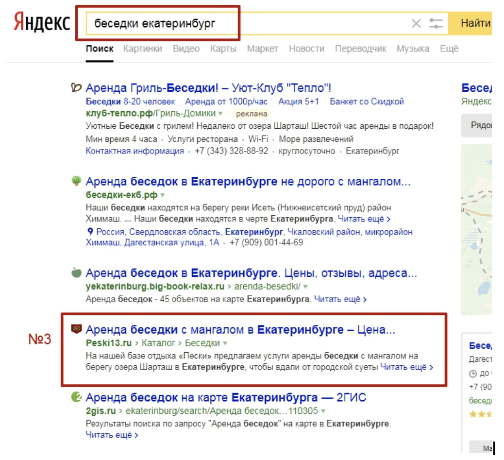 Сайт не появлялся в ТОП даже по локальным запросам вроде "загородный клуб Екатеринбург" или "аренда бани на дровах".