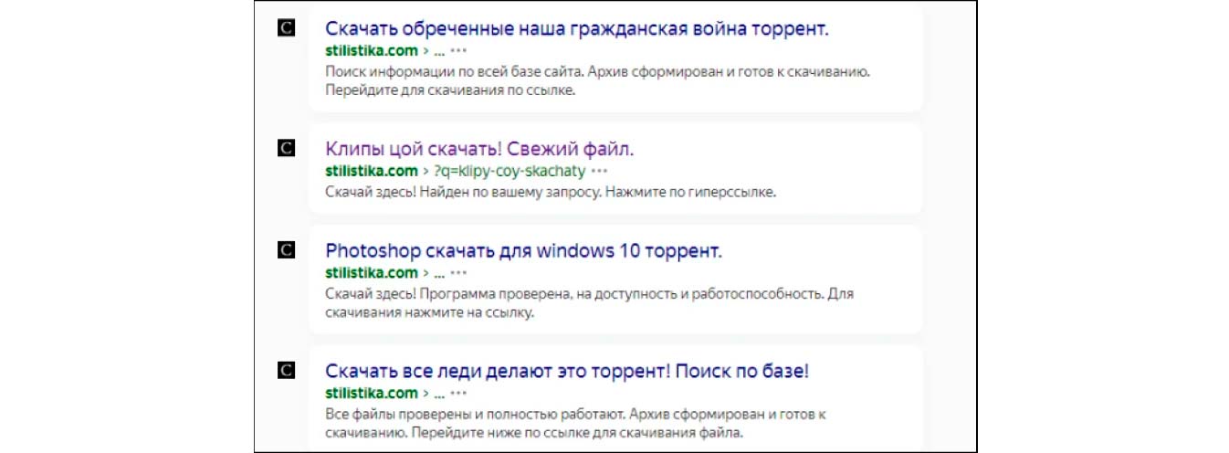 Вот такие страницы попали в результаты выдачи из-за ошибок в robots.txt