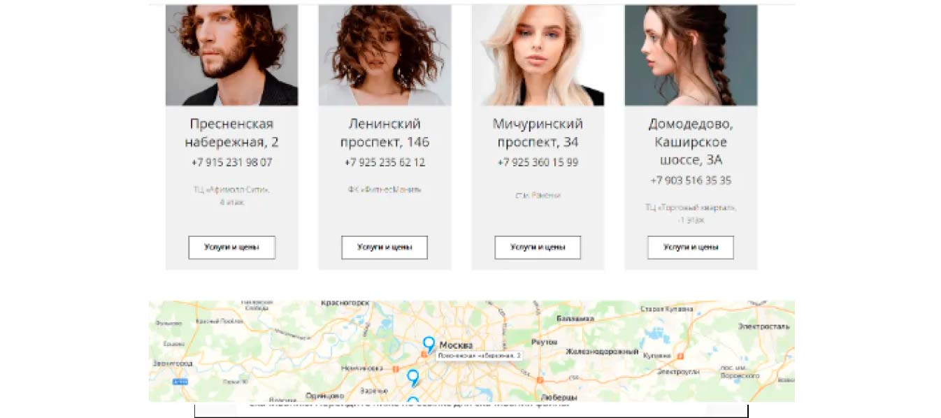 В первые три месяца правилась верстка, удалялись ненужные элементы, была добавлена интерактивная карта с адресами салонов в Москве, оптимизировались формы заявки и т. д